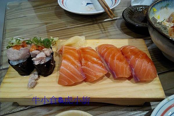 鮭魚肚握壽司(右)70元